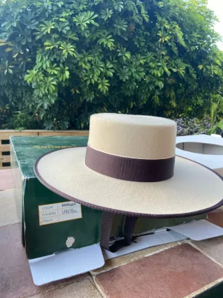 Sombrero cordobés ala ancha, color tabaco, talla 58, 100% lana, de la casa Signes. Muy cuidado, bonito y elegante.