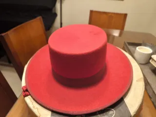 Sombrero estilo cordobés de color rojo. Talla 6 - Ala ancha. - Copa alta.