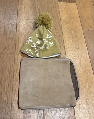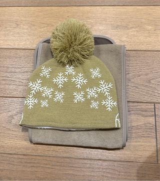Conjunto de gorro de lana con pompón y bufanda de forro polar y dos bolsillos con cierre Muy buen precio porque tiene una pequeña marca comercial. - Gorro con diseño de copos de nieve blancos. - Bufanda suave y cálida.
