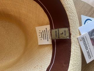 Vendo un sombrero Panamá original de alta calidad. Es de color beige con detalles marrones. - Está hecho de paja. - Tiene una banda de cuero marrón. - Se encuentra en excelentes condiciones. - Talla XL - No es imitación , es original , nuevo vale 190€.