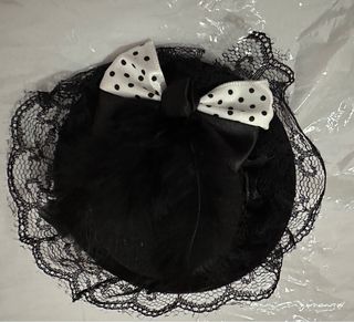 Este sombrero es un accesorio encantador para muñecas. - Diseño con lazo de lunares y detalle de plumas. - Base de tela -con pinzas de sujeción -fotos con medidas 5€ la unidad