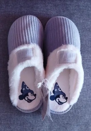Adorables zapatillas de estar por casa con un diseño inspirado en Mickey Mouse de Disney. - Detalle de Mickey con sombrero de mago. - Forro interior suave y cálido. - Talla M