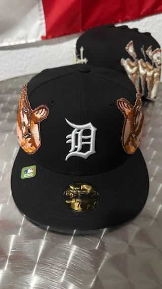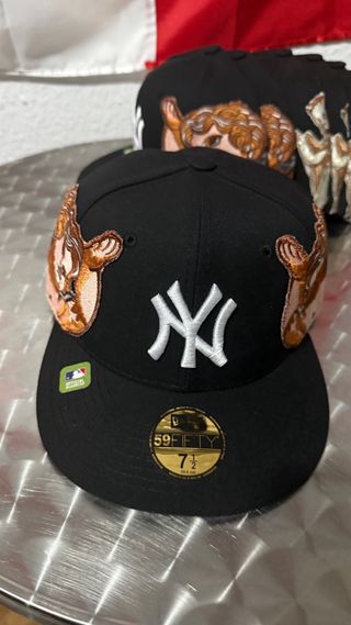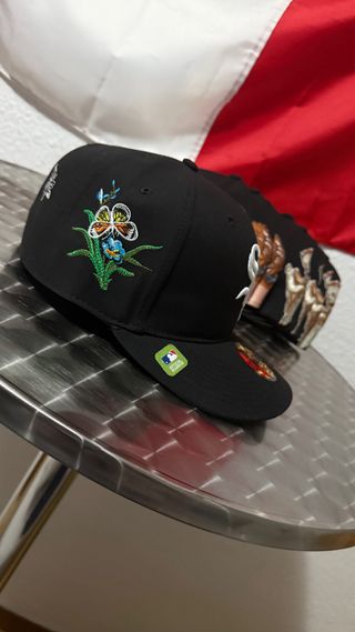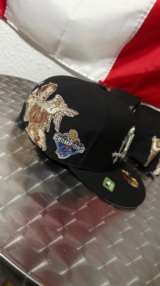 Gorra con un diseño llamativo y detalles bordados. - Bordado frontal con figura y texto. - Parche lateral de Champions. - Visera con diseño. - Etiqueta de MLB en la visera.