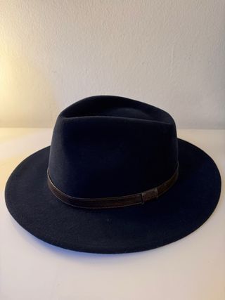🎩 Sombrero MIROC tipo Fedora – Fieltro 100% de Lana – Hecho en España. Talla: L/59 Vendo sombrero de la marca MIROC, estilo fedora clásico, color azul oscuro, fabricado en España y confeccionado en 100 % fieltro de lana. Diseño elegante y atemporal, con cinta de color marron, ideal para looks clásicos, urbanos o más arreglados.