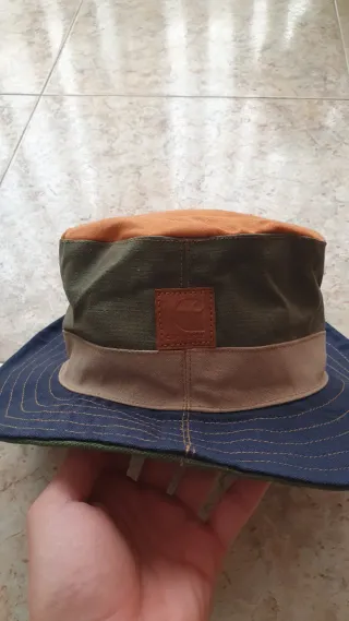 Sombrero tipo bucket de la marca Carhartt. - Preguntar por privado cualquier duda. - Diseño con paneles en azul y verde. - Banda de color beige. - Etiqueta de cuero con logo en la parte frontal. - Usado una vez, en buenas condiciones. Gorro Carhartt estilo pescador, perfecto para darle un toque urbano y desenfadado a cualquier outfit. - Confeccionado con materiales resistentes y de alta calidad, típico de la marca, ofrece comodidad y durabilidad. - Lleva el clásico parche Carhartt en la parte frontal, que le da ese toque distintivo y auténtico. - Ideal para usar en cualquier época del año.