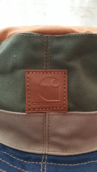 Sombrero Carhartt de estilo vintage, perfecto para streetwear. - Diseño patchwork con paneles en azul y verde oliva. - Banda de contraste en color tostado. - Detalle de parche cuadrado en la parte frontal. Gorro Carhartt estilo pescador, perfecto para darle un toque urbano y desenfadado a cualquier outfit. - Confeccionado con materiales resistentes y de alta calidad, típico de la marca, ofrece comodidad y durabilidad. - Lleva el clásico parche Carhartt en la parte frontal, que le da ese toque distintivo y auténtico. - Ideal para usar en cualquier época del año: protege del sol en verano y aporta estilo en invierno.