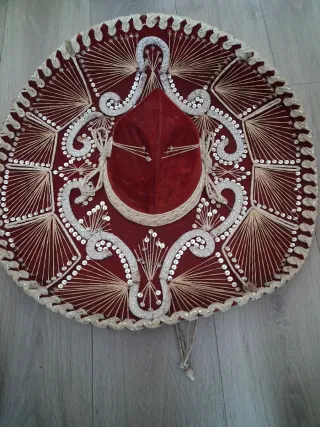 Sombrero mexicano estilo Pigalle, ideal para fiestas o eventos temáticos. - Diseño tradicional con adornos. - Color rojo y dorado.