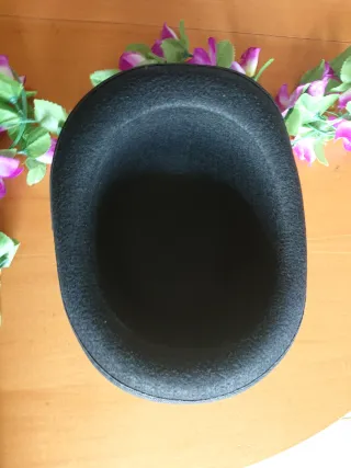 Sombrero de copa clásico, ideal para disfraces o eventos especiales. - Diseño alto y elegante. - Cinta decorativa alrededor de la base. Recogida en Metro Bon Pastor o CC La Maquinista