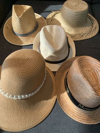 Conjunto de cinco sombreros de paja, perfectos para protegerse del sol con estilo.