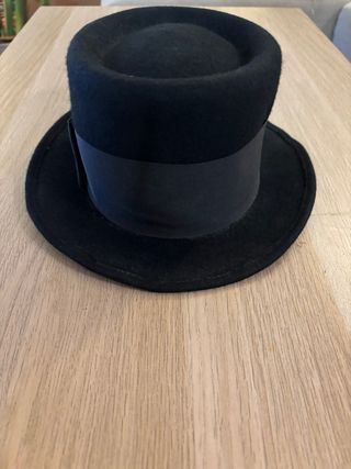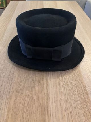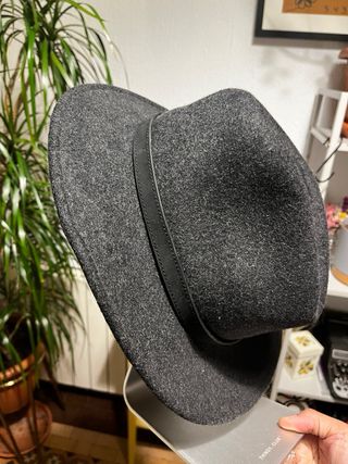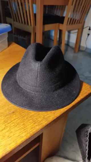 Sombrero negro de fieltro, ideal para disfraces o eventos. - Diseño clásico tipo fedora. - Banda decorativa alrededor de la copa.