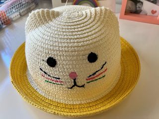 Adorable sombrero de paja con un divertido diseño de gato. Perfecto para protegerse del sol con estilo. - Tejido de paja transpirable. - Detalles bordados de cara de gato. - Medida se puede ver en la última foto.