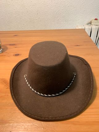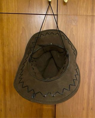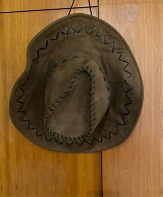 Sombrero estilo cowboy, perfecto para disfraces o eventos temáticos. Solo se usó durante un día. - Diseño clásico de cowboy. - Costuras decorativas en el borde y la copa.