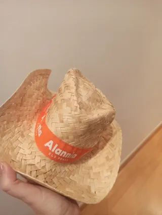 Sombrero de paja tejido, ideal como regalo o accesorio. - Diseño de paja natural. - Banda decorativa naranja con texto.