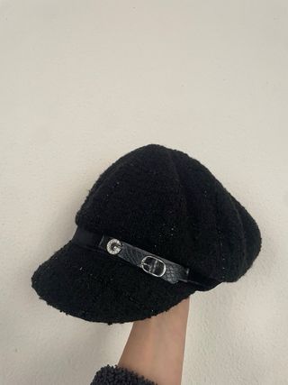 Gorra de estilo boina para mujer, con un diseño moderno y elegante. - Tejido texturizado. - Detalle de cinta con hebilla y la letra G adornada con pedrería. - Moderna y favorecedora 🌟 - Interior suave y cálida.