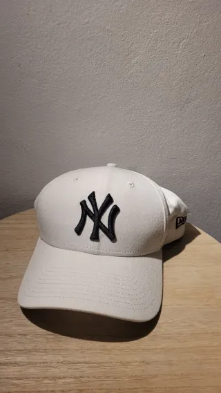 Gorra de béisbol New Era con el icónico logo NY bordado. - Color principal blanco. - Logo NY en color negro. - Etiqueta New Era visible en el lateral.
