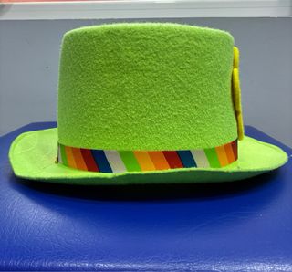 Sombrero de fieltro de disfraz con un diseño alegre y colorido, perfecto para fiestas o eventos. - Adornado con una flor amarilla y centro rojo. - Banda decorativa con rayas multicolores.