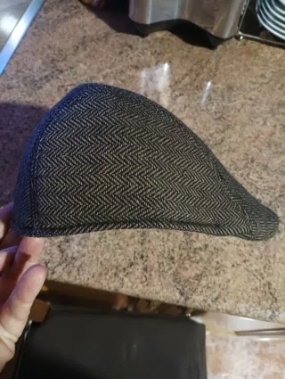 Gorra de estilo clásico con un diseño de espiga. - Tejido con patrón de espiga. - Diseño de gorra plana. Me está grande.