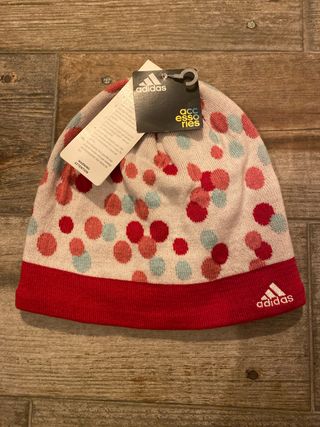 Gorro de punto con un divertido estampado de lunares. - Talla estandar - Diseño de lunares en blanco, rosa y azul claro. - Borde inferior de canalé rosa. - Logo de Adidas bordado en el borde.