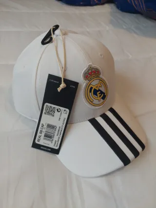 Gorra oficial del Real Madrid de la marca Adidas. Diseño clásico y cómodo. - Color blanco. - Escudo del Real Madrid cosido - Tiras icónicas de Adidas en la visera. - Cierre con hebilla ajustable en la nucs