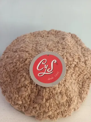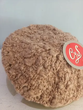 Boina de punto con un diseño redondo y textura mullida. - Color beige y marrón. - Detalle de etiqueta de la marca Cys.