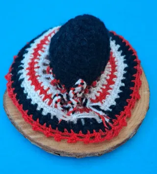 Sombrero tejido negro, rojo y blanco