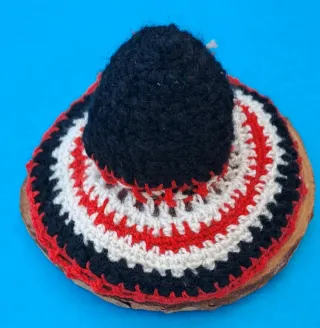 Sombrero mexicano tejido, ideal para fiestas o disfraces. - Adornado con pompones blancos. - Diseño tejido con detalles brillantes.