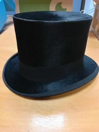 Chistera clásica de estilo antiguo. Un accesorio elegante y atemporal. Con su sombrerera. - Material: piel de castor - Color: negro.