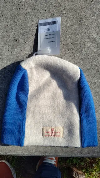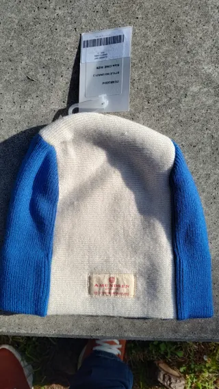 Gorro de lana merino de la marca Amundsen Sport, nuevo y sin usar. Talla única - Diseño con paneles en color azul y blanco. - Etiqueta de la marca cosida en la parte frontal.