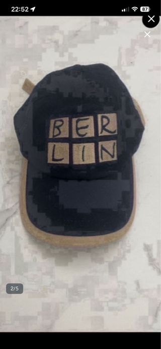 Dos gorras con diseños de ciudades. - Gorra marrón con bordado CHICAGO. - Gorra negra con bordado BERLIN en recuadros. Por 6€ las dos gorras.