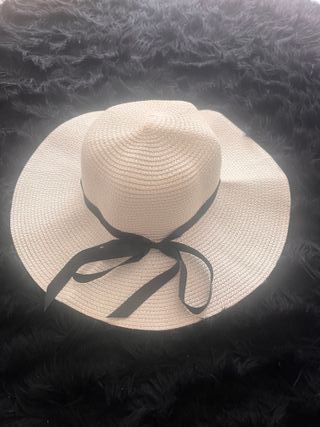 Pamela de estilo elegante, perfecta para complementar tu atuendo. - Diseño tejido en color beige. - Adornada con un lazo negro. - Ala ancha para mayor protección.
