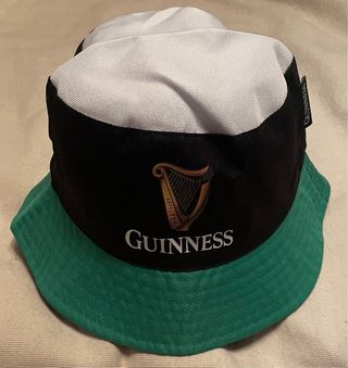 Sombrero tipo bucket con diseño de Guinness, ideal para celebrar el Día de San Patricio. - Parte superior blanca y negra. - Ala de color verde brillante. - Logo de Guinness bordado en la parte frontal. - Etiqueta lateral con el nombre de la marca.