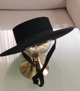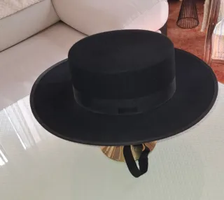 Sombrero estilo cordobés talla 55, con un diseño clásico y elegante, solo hace falta limpiarlo y moldearlo para ponerlo recto, lleva muchos años guardado - Material de fieltro. - Banda decorativa en color verde.