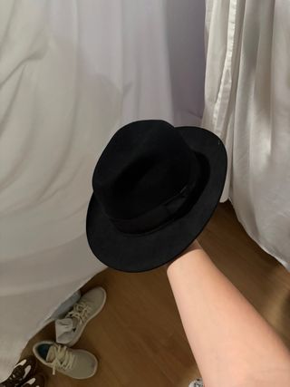 Sombrero negro de Primark. - Depelo sintético, con un diseño moderno y elegante. - Material suave y agradable al tacto. - Talla única. Nuevo. A estrenar.