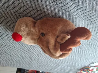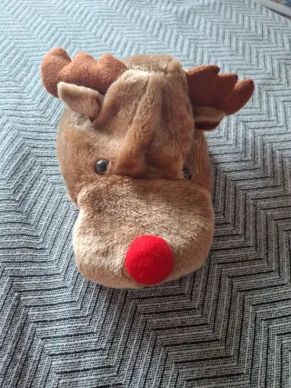 Divertido gorro con forma de reno, perfecto para fiestas o para darle un toque navideño a tu atuendo. - Diseño de reno con cuernos y nariz roja. - Material suave y cómodo.