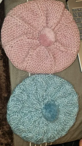 Conjunto de dos boinas de lana, perfectas para niñas. Cada gorro tiene un pompón decorativo en la parte superior. - Tejido de lana suave y cálido. - Diseño tejido con detalles. - Incluye un pompón en cada gorro.