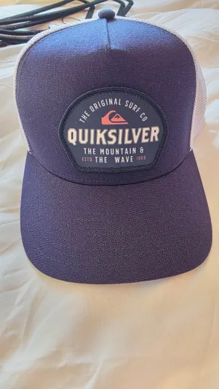 Gorra de la marca Quiksilver con un diseño moderno y llamativo. - Parte frontal azul marino. - Malla blanca en la parte trasera para mayor ventilación. - Parche con el logo de Quiksilver en la parte delantera.