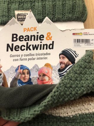 Conjunto de gorro y cuello a juego, tamaño junior-adulto. - Forro polar interior. - Gorro de punto con pompón. - Cuello a juego. - Diseño a rayas en varios tonos.