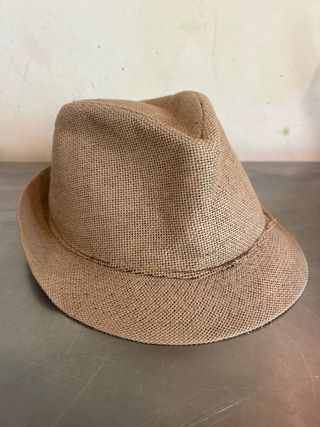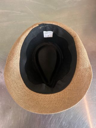 Vendo un sombrero de hombre, talla M. Es de color beige y marrón. Está en buen estado. - Material: Paja - Talla: Mediana (M)