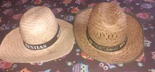 Dos sombreros de paja marca Los Bestias de chico y chica. - Material de paja tejido. - Banda decorativa con el nombre de la marca. OFERTA: LOS DOS X 5€.