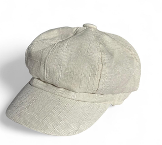 Sombrero de tela con un diseño texturizado. - Tejido con patrón de cuadros sutil. - Visera pronunciada. - Detalle abullonado en la parte superior.