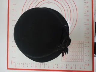 Sombrero de fieltro negro, con cinta decorativa de alta calidad. Años 40 -En perfecto estado.
