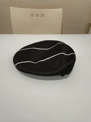 Gorra de hombre de verano Color negro con rayas blancas Gorra de la firma Burn - Tejido de punto sintético con malla transpirable. Goma elástica Talla 57- 58 Gorras de marcas comerciales Gorra de verano de hombre