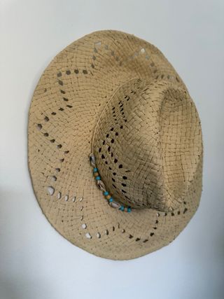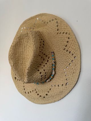 Sombrero de paja. Nunca puesto, es nuevo. - Material: Paja - Color: Beige - Adorno: Conchas y cuentas turquesas