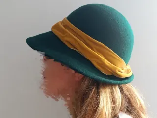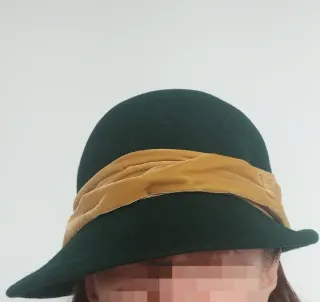 Sombrero lana y terciopelo verde y amarillo.