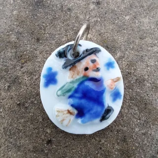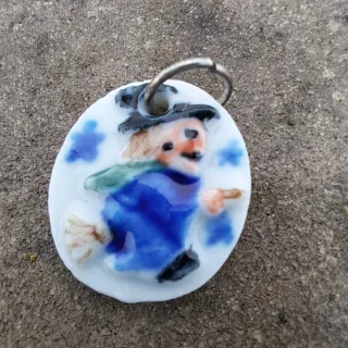 Original colgante de cerámica con diseño de bruja volando. Una pieza única con un toque artesanal. ⚠️SIN CAJA⚠️ NO CONSERVO LA CAJA ORIGINAL - Detalle de bruja con sombrero y escoba. - Motivos florales azules. - Cierre con anilla metálica. - Medidas Alto 2 cm Ancho 1,5 cm - Estado Bueno Artículo de segunda mano Está tal y como ves en las fotos. Lo que ves es lo que vendo