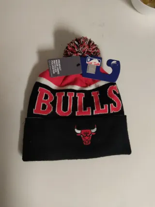 Gorro de lana con el logo de los Bulls. - Diseño con el nombre BULLS en grande. - Logo del equipo bordado en la parte frontal. - Pompon en la parte superior.