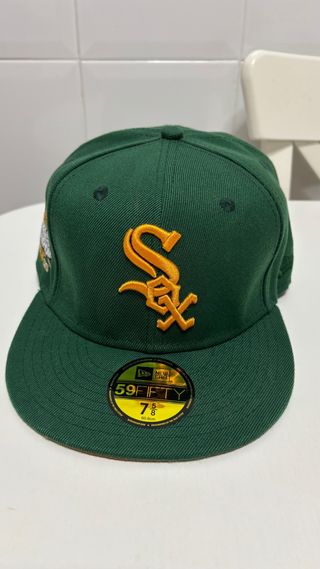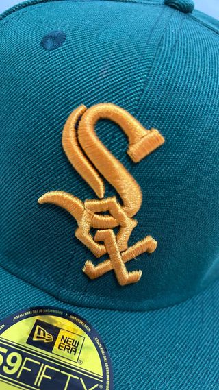 Gorra de béisbol de los Chicago White Sox. - Diseño en color verde. - Logo SOX bordado en dorado en la parte frontal. - Etiqueta New Era 59FIFTY en la gorra. - Gorra sin usar y con las pegatinas sin tocar