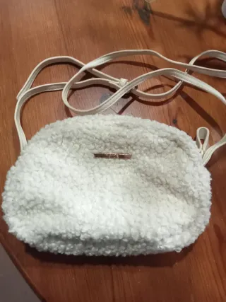 Bolso de estilo borreguito en color crema. - Asa larga ajustable. - Detalle metálico de la marca en la parte frontal.