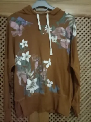Sudadera con capucha y estampado floral. - Diseño con flores en tonos pastel y verdes. - Cordones blancos para ajustar la capucha. - Bajo con aberturas laterales.