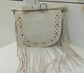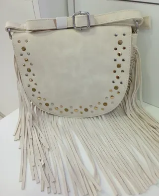 Bolso bandolera de flecos y tachuelas. - Adornado con tachuelas doradas y plateadas. - Detalle de flecos largos en el borde inferior. - Correa ajustable para llevar al hombro o cruzado. TOTALMENTE NUEVO #bolsos #bandolera #moda